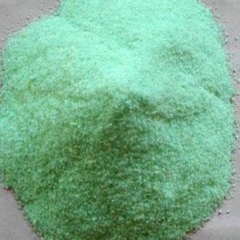 硫酸亞鐵為藍綠色單斜結晶顆粒,無氣味。無水FeSO4是白色粉末,含結晶水的FeSO4是淺綠色晶體,俗稱“綠礬”,溶於水,其水溶液呈淺綠色。在幹燥的空氣中易風化,遇潮後其表麵氧化成棕色堿式硫酸鐵。硫酸亞鐵具有良好的混凝作用,混凝顆粒大,沉降快,除色效果好,成本低。